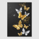 Borboletas Douradas, joias e brancas sobre fundo preto. Borboleta ouro.