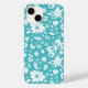 Padrão floral branco com borboletas em fundo turquesa. Design pode ser movido para criar um efeito diferente.