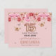 Glitter feminino com tipografia de nome de script de rico. Texto do balão rosa dourado 15. Rosas rosa e borboletas na borda superior. Excelente para as comemorações de Quinceañera. Adorável Guardar o lembrete de aniversário de Data.