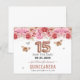 Glitter feminino com tipografia de nome de script de rico. Texto do balão rosa dourado 15. Rosas rosa e borboletas na borda superior. Excelente para as comemorações de Quinceañera. Adorável Guardar o lembrete de aniversário de Data.