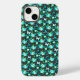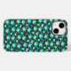 Borboletas de flores bonito e corações em aqua verde e jade com iphone padronizado em uma cinza de ardósia escura. Padrão projetado exclusivamente por Sarah Trett.