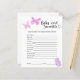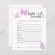 Beijos de borboletas roxas, lilás, rosa, e chá de fraldas de desejos de bebês. Cartões de chá de fraldas de borboleta para uma menina. Itens correspondentes disponíveis. Respostas: CRAVINGS, CRYING, PACIFIER, FRASCO, LUZ NOTURNA, LULLABY, STROLLER, EPIDURAL, BURP, ALTA CADEIRA, SACO DE FRALDA, SWADDLE