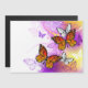 Laranja, borboletas monarcas detalhadas sobre luz, roxo, pitoresco, fundo pintado.