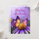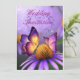 Um convite adequado para primavera de casamentos de verão com uma linda flor púrpura de margarida e borboletas lindas. Foi adicionado um detalhe ao cartão com o coração decorado em segundo plano. O reverso tem a mesma imagem, mas é mais leve para que o local do casamento e os detalhes possam ser facilmente lidos.