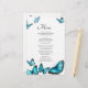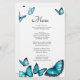 Azul, cor d'água romântica, belas borboletas. Menu de casamento de rico elegante.