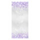 Um cartão de cardápio de casamento elegante e glamouroso. Personalize e adicione seus nomes, data e menu de casamento. Fundo com aspecto fino prateado, decorado com confete violeta e borboletas como marcas d'água.
