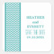 Borda Chic e Chevron moderna Salve os adesivos de Data com uma simples borda padrão de chevron em turquesa e branco. Esta design de na moda vai dar o tom para um casamento elegante. Fácil de personalizar, basta adicionar os detalhes do casamento nos campos de texto fornecidos. Clique em "Personalizar" para encontrar mais opções de personalização.