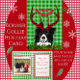 Cachorro alegre na fronteira com chifres vestindo uma bandeira de Natal Feliz. Este design adorável tem um fundo verde brilhante festivo. O dentro está pronto para sua foto pessoal da família.