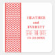 Borda Chic e Chevron moderna Salve os adesivos de Data com uma simples borda padrão Chevron em vermelho e branco. Esta design de na moda vai dar o tom para um casamento elegante. Fácil de personalizar, basta adicionar os detalhes do casamento nos campos de texto fornecidos. Clique em "Personalizar" para encontrar mais opções de personalização.