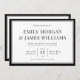 Este clássico design de convite para o casamento apresenta um fundo branco nítido com uma fronteira negra aliada à tipografia inspirada na vintage. O olhar é simples, chique e eterno. Juntos, estes elementos criam um elegante design de convite de casamento que seria perfeito para qualquer estilo de casamento.