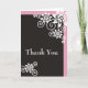 Designer Obrigado Cartões para expressar sua apreciação elegantemente.Flores brancas em um fundo preto com uma borda cor-de-rosa adicionam um elemento atrativo ao seu Designer Obrigado Cartões.