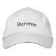 Mostre sua força com este Boné Sobrevivente mostrado em branco com texto bordado preto. Personalize este item ou comprar como está.