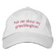 Legal presente para o orgulhoso avô ou avó com "Pergunte-me sobre minha neta!" em um chapéu bordado. Ideias de Dia de os pais e Dia de as mães de excelente! Fácil de personalizar o texto.