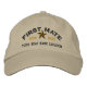 Um design personalizado de bordado de primeiro-oficial náutico em um fino boné casual bordado de beisebol. Um tipo de declaração de moda que certamente fará uma impressão sobre ou fora do barco.