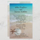 Bonita e barato, tudo em um convite de casamento com um fundo de praia. A água tropical azul do oceano, a areia da praia e um peixe-estrela com dólar de areia é o design por trás de três modelos de texto. Os nomes do casal no topo estão em um script manuscrito maior. O texto do convite inclui espaço para mencionar o endereço de recepção. Uma solicitação de resposta também pode ser adicionada na parte inferior do papel (ou excluir o texto) para incluir um site de casamento, e-mail, texto/número de telefone. O reverso também tem uma imagem de praia. Esta é uma forma barato de convidar convidados sem precisar de placas de resposta ou gabinetes adicionais. Escolha um dos tipos de papel. Os envelopes são opcionais.