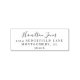 Este carimbo de tinta de endereço de retorno é uma maneira fácil de marcar envelopes e pacotes com seu endereço de devolução e apresenta um script clássico de estilo de caligrafia para a linha de nome com uma fonte serif tradicional que mostra claramente o endereço para que as máquinas do sistema postal lessem.
