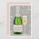 Convites de aniversário únicos apresentam uma garrafa de champanhe ilustrada e vidro de flauta com os detalhes de celebração de aniversário do marco no rótulo da garrafa e vidro de champanhe.