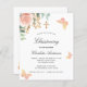 Um fundo branco decorado com verde de eucalipto, ouro rosa e rosa-rosa-rosa-pincel, folhas de ouro e borboletas. Personalize e o nome e os detalhes da cerimônia.