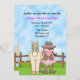 Bela vaqueira e convite de aniversário de cavalos para meninas. É perfeito para qualquer festa temida de cavalo ou pônei.