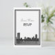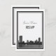 Boston Skyline Etch Look Framed - RSVP Card Elegant, na moda, convites e acessórios personalizáveis por chic com uma vista gravada de água para aparência de Boston, Massachusetts skyline, emoldurada a preto. Este produto faz parte de um conjunto de designs correspondentes que são facilmente personalizáveis para muitas ocasiões e eventos. Se você precisar de placas RSVP separadas, Obrigado, Notas, Carimbos, ímanes, etiquetas de favorecimento, cartões de escolta, etiquetas de vinho, menus, programas de eventos ou outros acessórios, por favor veja nossas outras listas. Se você quiser ver este design em cores diferentes ou com elementos que você vê em algumas de nossas outras designs, se você quiser com diferentes fotos do NYCisMyMuse que você vê em nossa loja, ou se você precisar de um produto correspondente que você não encontrar listado, entre em contato conosco e ficaremos felizes em acomodá-lo. Além disso, se precisar de outra ajuda para personalizar o seu design, por favor, avise-nos. Observe que este é um design gráfico e não contém tecidos, metais, gravura ou relevo. 2013 ©NYCisMyMuse