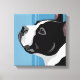 Retrato de perfil contemporâneo ilustrado de Boston Terrier com fundo azul na canvas.