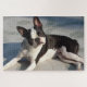 Adorável quebra-cabeça de quebra-cabeça com um cão de Boston Terrier.