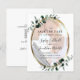 Orçamento Casamento Dourado de Foto Metálica Eucalyptus Salve a Data... Nossa botânica do barato Save the Date apresenta uma estrutura oval metálica dourada embelezada com folhas de eucalipto abarrotadas com esmeraldas criando uma borda natural para sua foto e texto de anúncio sobreposto. A parte traseira do cartão contém as informações do site do casamento e um modelo gráfico de código QR que você pode substituir por seu próprio gráfico de código. Todo o texto de exemplo em ambos os lados da placa pode ser facilmente revisado com seus próprios detalhes no modelo de personalização.