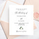 Um fundo branco decorado com folhas simples de ginkgo. Personalize e adicione seus nomes e detalhes. Fundo: sage verde. 1 folha = 1 convite impresso de borda a borda.
