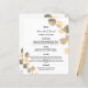 Personalize e adicione seus nomes, data e menu de casamento. Fundo branco, decorado com ouros de eucalipto.