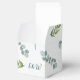 Casamento ou festa, caixa de favor com design botânico. Uma dispersão de folhas de eucalipto, verde e ranhuras de cobrir muito claras (dobradas pelo receptor). Pode ser utilizado ou não um lugar para as iniciais do casal, a azul escuro, na frente. Se o estilo da caixa for alterado, o texto pode não aparecer, então remova-o antes de fazer o pedido. A simples impressão da natureza também funciona para chás de panela.
