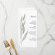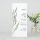 Add a refined botanical touch to your reception tables with this elegant minimalist greenery wedding menu card. Featuring a soft eucalyptus-style leaf illustration and clean modern typography, this design blends natural beauty with timeless sophistication.