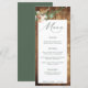 Belo cardápio de casamento, mesa decor para compartilhar seu dia especial com seus convidados. Este cartão de menu impresso em papel clássico é perfeito para decorar sua recepção ou espaço de cerimônia, oferece amplo espaço para descrever cada curso, e tem tons pastéis macios e florais modernos de aquarela verde em tons de pêssego, branco, marfim creme, sábio e verde mais brilhante. Este evento personalizado fornece coordenadas acessórios com a nossa coleção floral de cheio botânico boho de papelaria e artigos de papel para eventos.