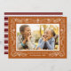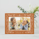 Deseje aos amigos e à família um feliz Dia de Ação de Graças — e compartilhem uma foto de outono favorita — com o nosso cartão com fotos de Autumn Botanicals. Uma intrincada borda botânica em branco nítido sobre um rico fundo de abóbora enquadra sua foto horizontal neste chic e elegante cartão de Ação de Graças. Personalize nosso cartão de outono de Botânica com sua própria saudação personalizada (mostrada com "Desejos de Ação de Graças") e seu nome de família e ano.