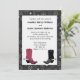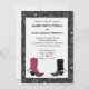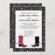 Um convite ocidental maravilhoso feito em um teste padrão preto e branco do bandana. A beira em torno deste convite é um teste padrão preto do bandana quando o centro for branco e reservado para você texto. Duas botas de vaqueiro, um preto e um rosa sentam-se na parte inferior. Excelente para algum casamento temático do país.