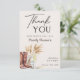 Este cartão de agradecimento para Chá de Noiva Boots and Bubbly Boho Bridal Shower é a maneira perfeita de mostrar apreço após um divertido chá de noiva com tema country. Com botas de cowboy em aquarela, taças de champanhe e grama pampas, ele captura o charme de uma celebração rústica e ocidental. O tema de botas e bebidas espumantes adiciona um toque lúdico, tornando-o ideal para qualquer noiva cowgirl. Seu design boho suave exala calor e elegância, perfeito para agradecer aos convidados com estilo. Complete seu chá de noiva com esses cartões de agradecimento sinceros - encomende hoje!
