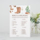 Este design apresenta cores neutras modernas em uma aplicação de aquarela. Design em impressão de vaca, copo de champanhe, cacto do deserto, botas de cowboy.