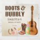 Botas e efervescente etiquetas personalizadas de vinho espumante para chá de noiva de vaqueira de rodeio country western. Botas de vaqueira, vinho espumante, taças de vinho espumante, um anel, violão, ferradura para um chá de noiva rústico country western de vaqueira.
