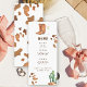 Este design apresenta cores neutras modernas em uma aplicação de aquarela. Design em estampa de vaca, copo de champanhe, cacto do deserto, botas de cowboy.