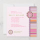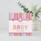 Modelo de convite personalizável para Chá de fraldas de de álbuns com retrorreflectores, botões de flores fofinhos e letras costura em padrões coloridos, na maioria cor-de-rosa. Personalize-o com seu texto em ambos os lados e escolha o tipo de papel e o tamanho do convite. Também estão disponíveis envelopes quadrados personalizados correspondentes:
