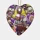 Um ornamento bonito em forma de coração com uma colagem de botões roxos e arcos amarelos.