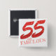 Este botão apresenta um design de celebração de aniversário feliz "55 e fabuloso". O número 55, em faux coral glitter, domina o topo do design enquanto "e Fabuloso" em coral vivo, está ancorado no fundo.