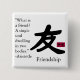 Botão quadrado com o caráter chinês para amizade e esta citação de Aristóteles: "O que é um amigo? Uma alma solteiro morando em dois corpos." Veja chaveiro e colar de metal grande e alto quadrado. Veja a coleção inteira de botões e pinos de iluminação em TOUCHES ESPECIAIS | Seção Favoritos para festas.