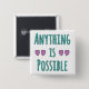 A charming and uplifting design featuring the inspirational phrase "Anything is Possible" in soft light teal, accented with two sets of delicate pink hearts to spread positivity and love.