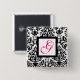 Bóton Quadrado 5.08cm ART NOUVEAU DAMASK SQUARE MONOGRAM, Fúchsia rosa