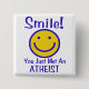 Pnha um rosto humano sobre o ateísmo com uma cara amarela brilhante esboçada no azul com letras azuis que diz: "Sorriso! Você apenas encontrou um ATEU."