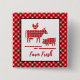 Botão do pin back da fazenda do campo design apresenta silhuetas de animais fazendas (vaca, galinha, porco) com preenchimento de bandana vermelha