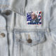 As eleições de 2020, Bernie Sanders, apoiam o botão político com pano de fundo de bandeira americana para democratas, liberais ou humanitários.