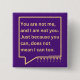 Crachá com a citação do poema de reflexão: "Não sou eu, e não sou você, só porque pode, não significa que eu também posso". Por LizziesJumbledWorld. Luz sobre fundo escuro.