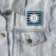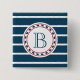 Design de temas náuticos com decoração em forma de monograma em forma redonda sobre fundo listrado a azul e a branco