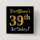 As características deste design quadradas simples do botão uma mensagem gostam de "aniversário FirstName do 39th! ", com "39th" tendo o falso/imitação ouro-como o olhar da coloração, em um fundo colorido preto. O nome pode ser personalizado. Os botões como estes poderiam talvez ser vestidos por convidados em uma festa de aniversário para alguém que está comemorando seu nono aniversário trinta, onde o partido está sendo realizado em uma grande área com lotes de outras pessoas atuais (como um parque da cidade ou um parque temático). [~Z0000162]